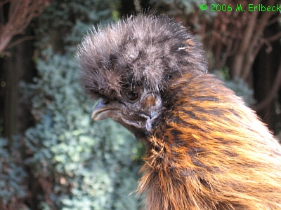 Seidenhuhn “Punkie” hört aufmerksam zu.